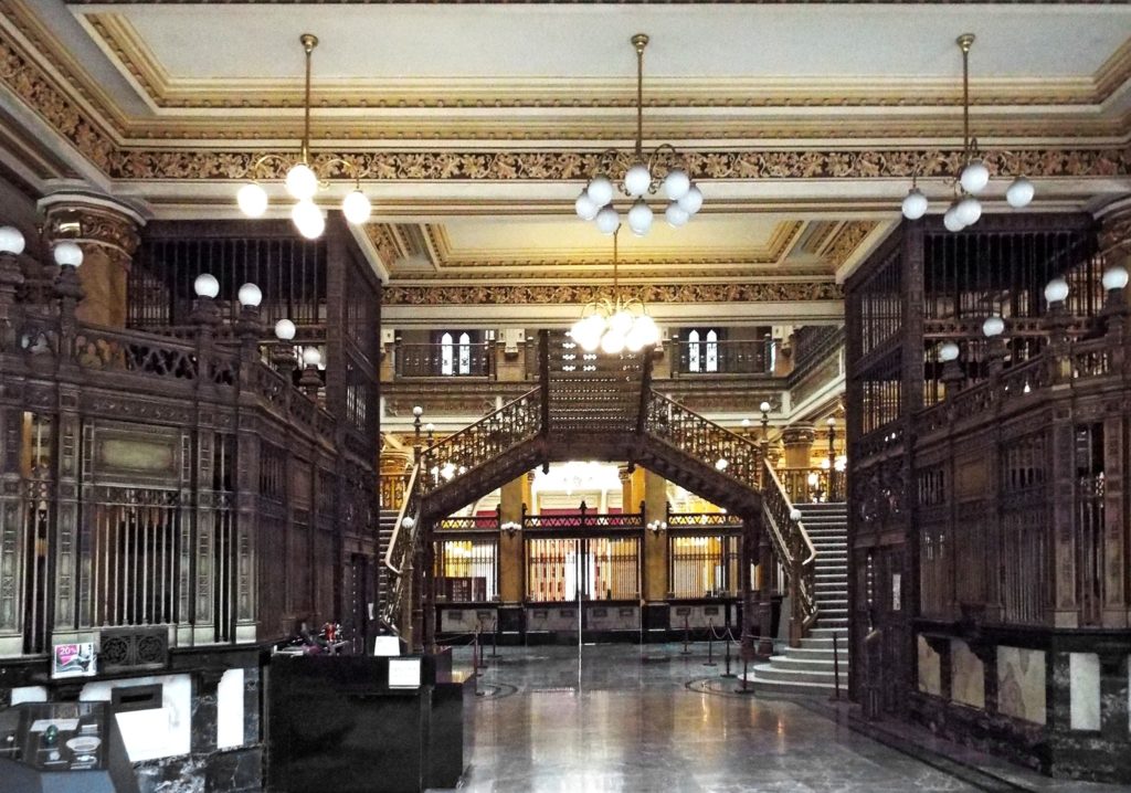 Así, después de casi cinco años de construcción, el 17 de febrero de 1907, el presidente Porfirio Díaz inauguró el Palacio Postal o Quinta Casa de Correos, una increíble edificación de cantera chiluca finamente labrada que, con los rayos del sol y su herrería de bronce dorada, da la impresión de que fuera completamente de oro