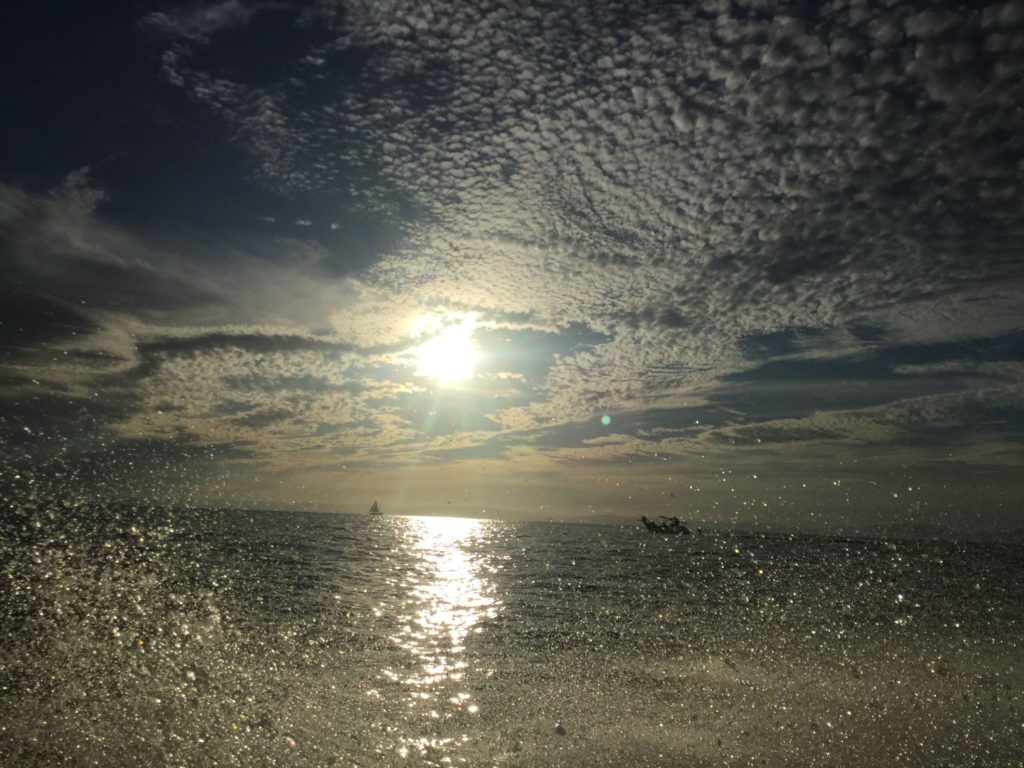La Baja Mar echa a andar con nosotros a bordo y a medida que el tiempo avanza y el sol cae, las aguas se vuelven violentamente azules. Azules como lo profundo del mar, como lo profundo del alma que ya descansa en alguna parte de Espíritu Santo.